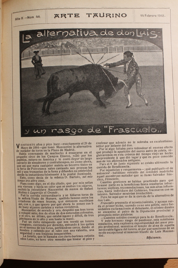 Arte Taurino. Revista semanal ilustrada. Año I, número 1, 5 de abril de 1911, a año III, número 119, 15 de julio de 1913. Segunda época: año III, número 1, 4 de agosto de 1913, a número 21, 22 de diciembre de 1913.