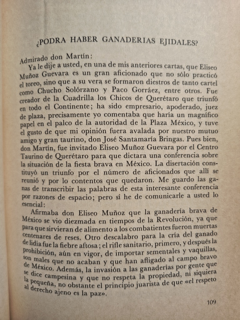Epistolario taurino de Clarinero a Martín Luis Guzmán.