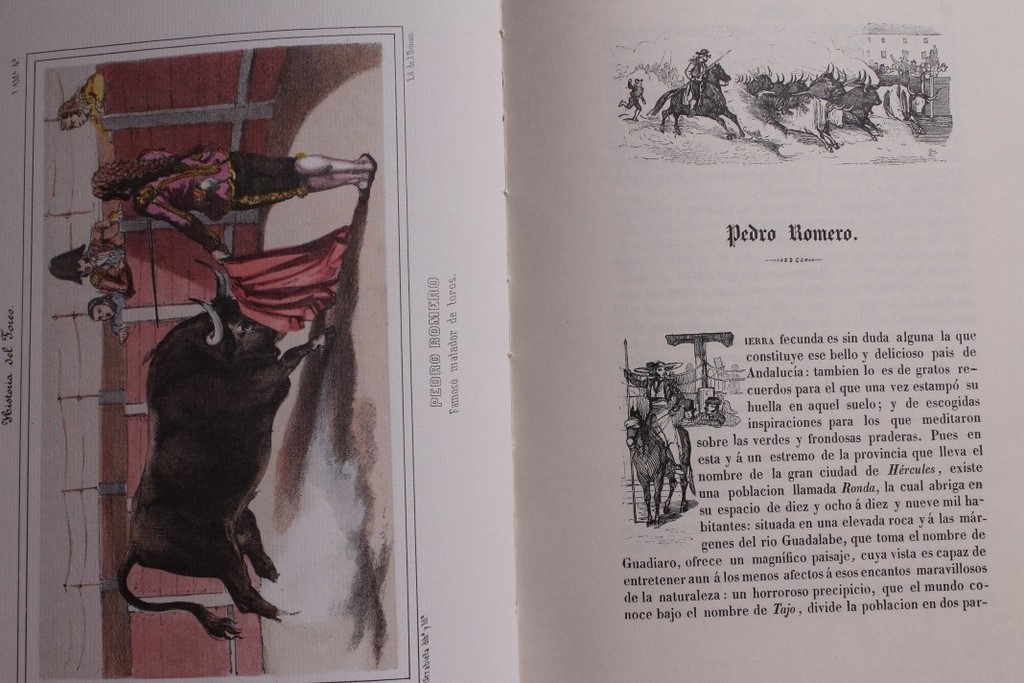 Con 24 láminas de retratos y suertes de la lidia, numerosas viñetas, cabeceras y letras capitulares. Edición facsímil de la de Madrid, Imp. de Anselmo Sta. Coloma, 1850.