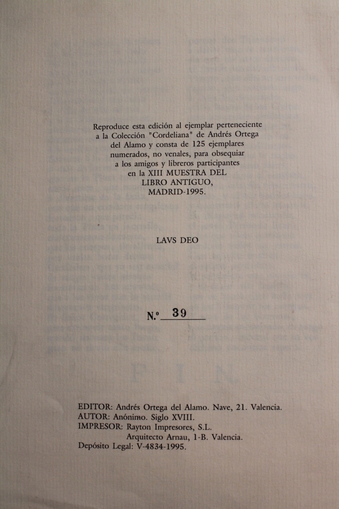 - Lugar de la edición: Valencia, 1995.
